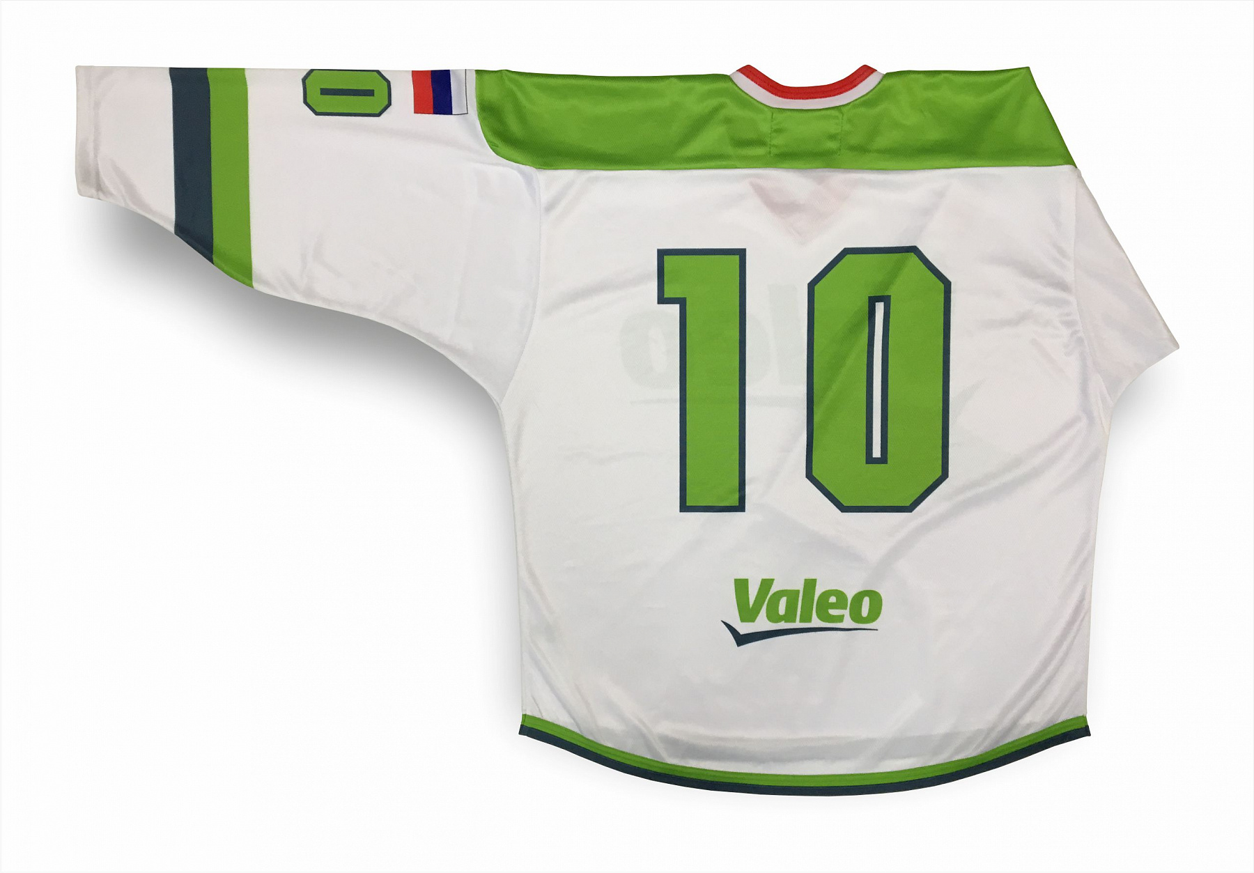 Классический крой, усиленные плечи, текстурированные нити, усиленные швы на плечах, номера, фамилия, логотип и рекламные шевроны выполнены методом сублимационной печати. До 42 размера скидка 10%.